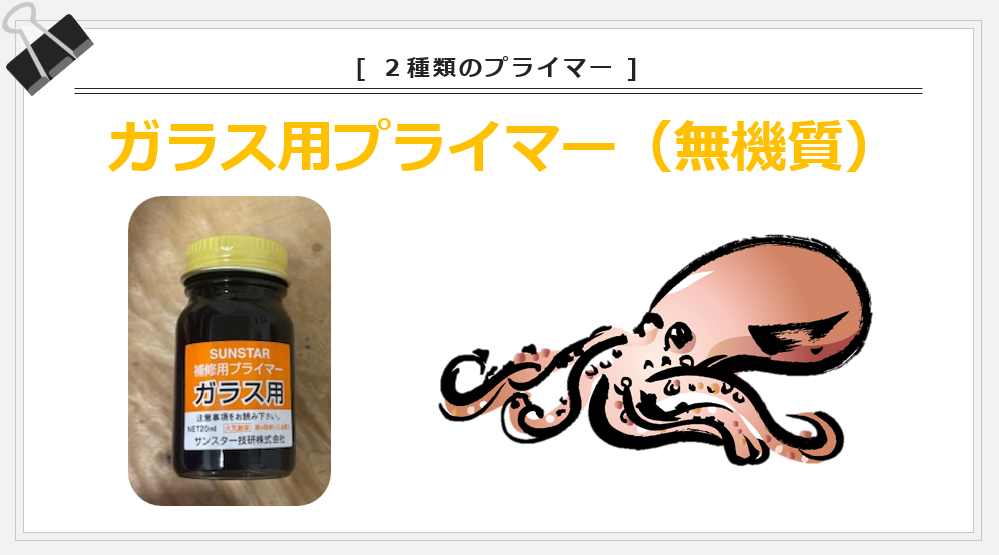 ガラス用プライマーの方がより強度が出る素材も数点あります